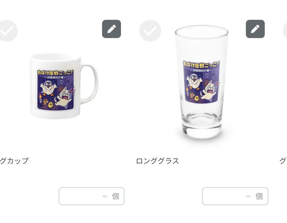 するとその画像をベースにしたTシャツ、スマホケース、マグカップ、キーホルダー、ステッカーなどの商品の画像ができます。