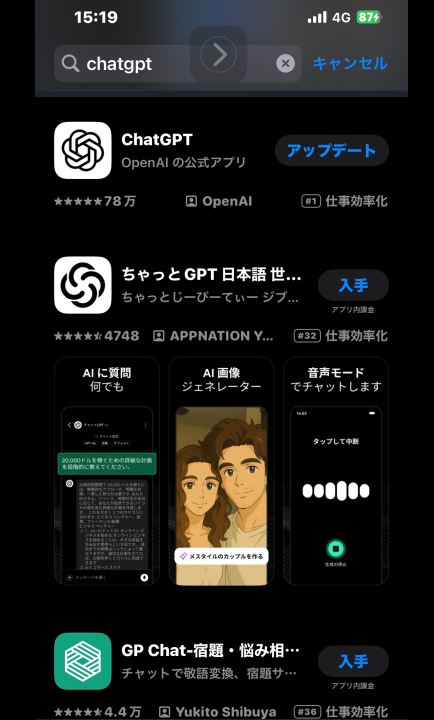 (類似したアプリがいっぱいあるので、必ずチャットGPTオープンAIの公式アプリからダウンロードしてくださいね!)