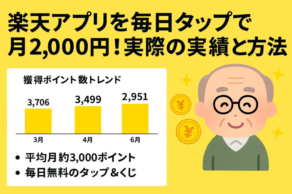 今回はその続編として、毎月約2,000円相当のポイント以上を楽天系アプリで得ている方法を