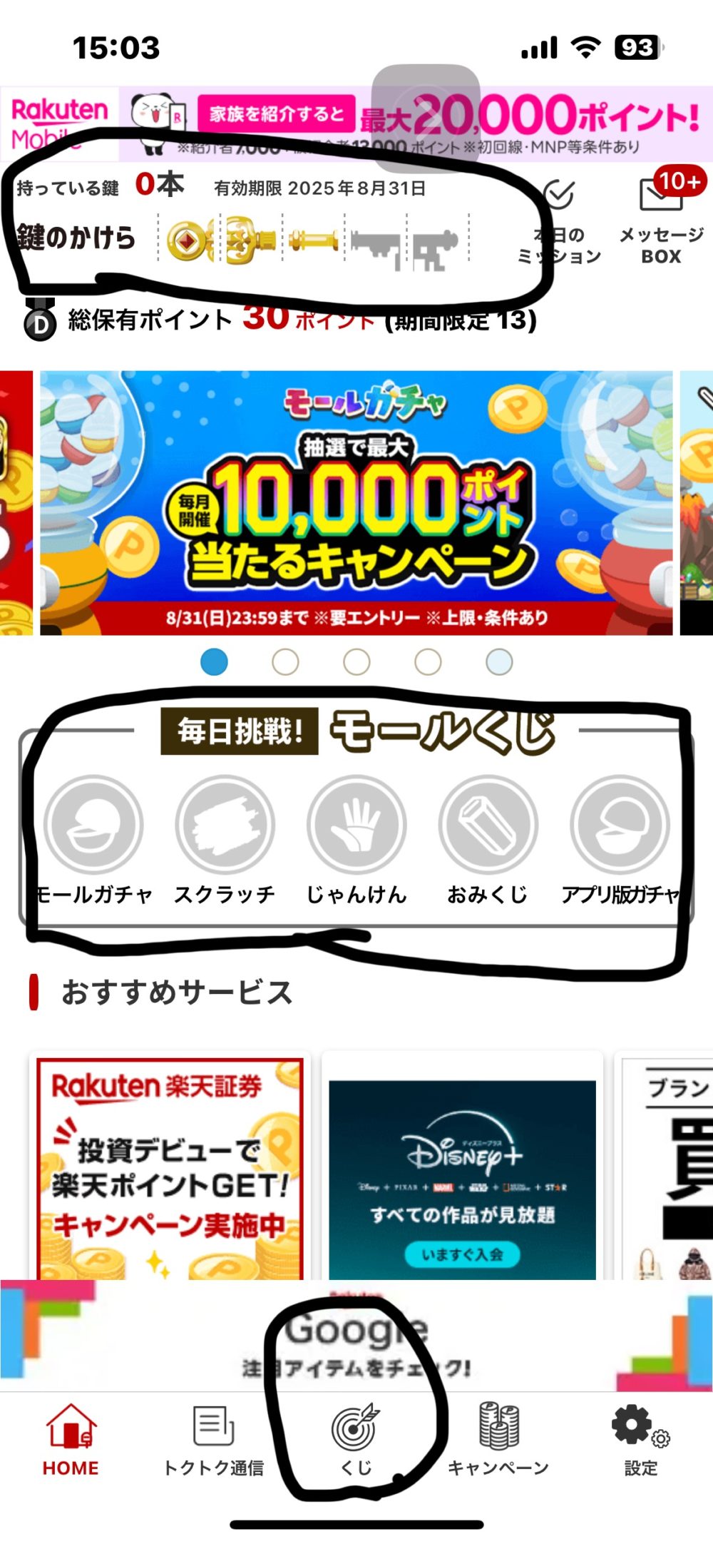- 毎日:中央部のモールくじ:モールガチャ・スクラッチ・じゃんけん・おみくじ・アプリ版ガチャを実施🎰1,2ポイント程度は毎日獲得できます。