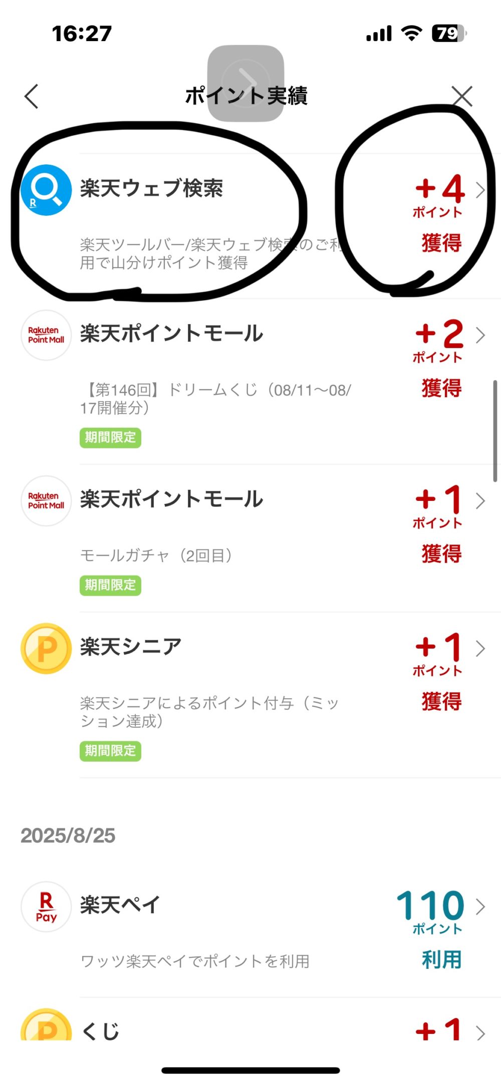 - 楽天ウエブ検索を毎日30回すれば4pt/日(まれに3ptの日もあり)