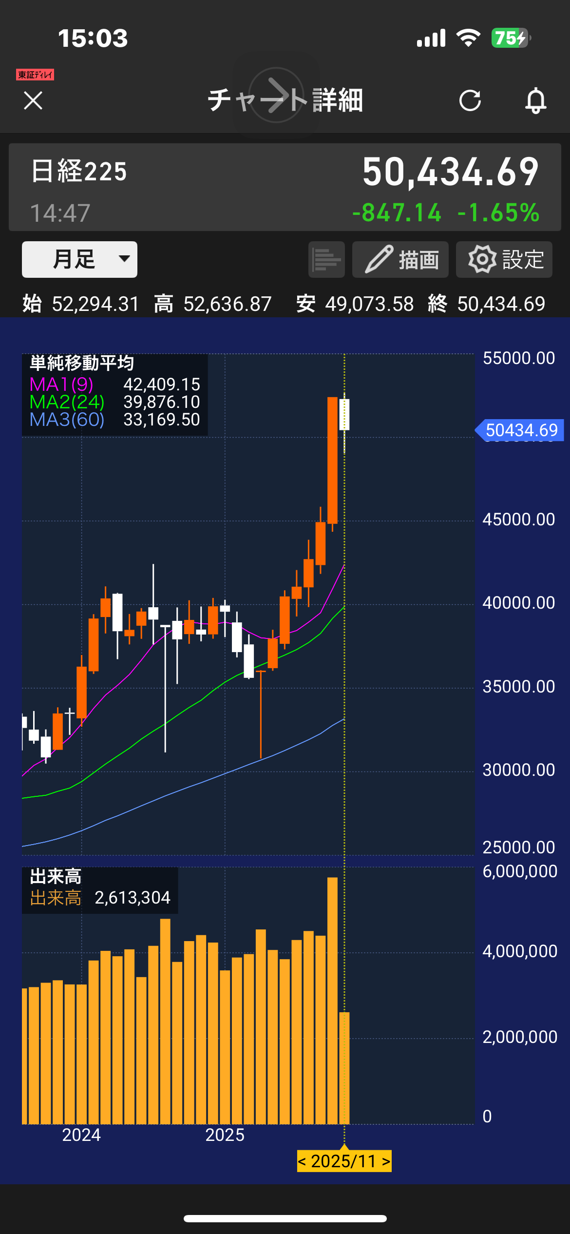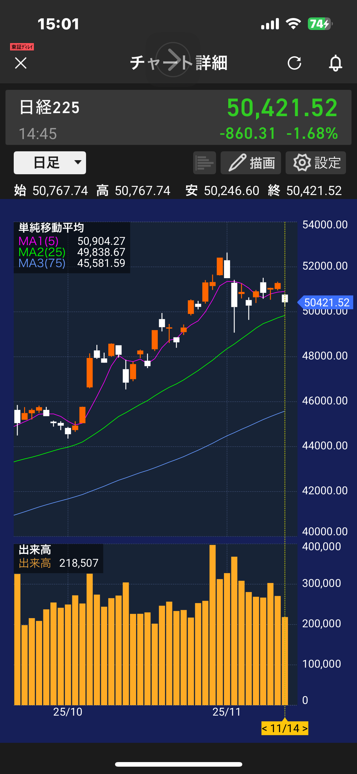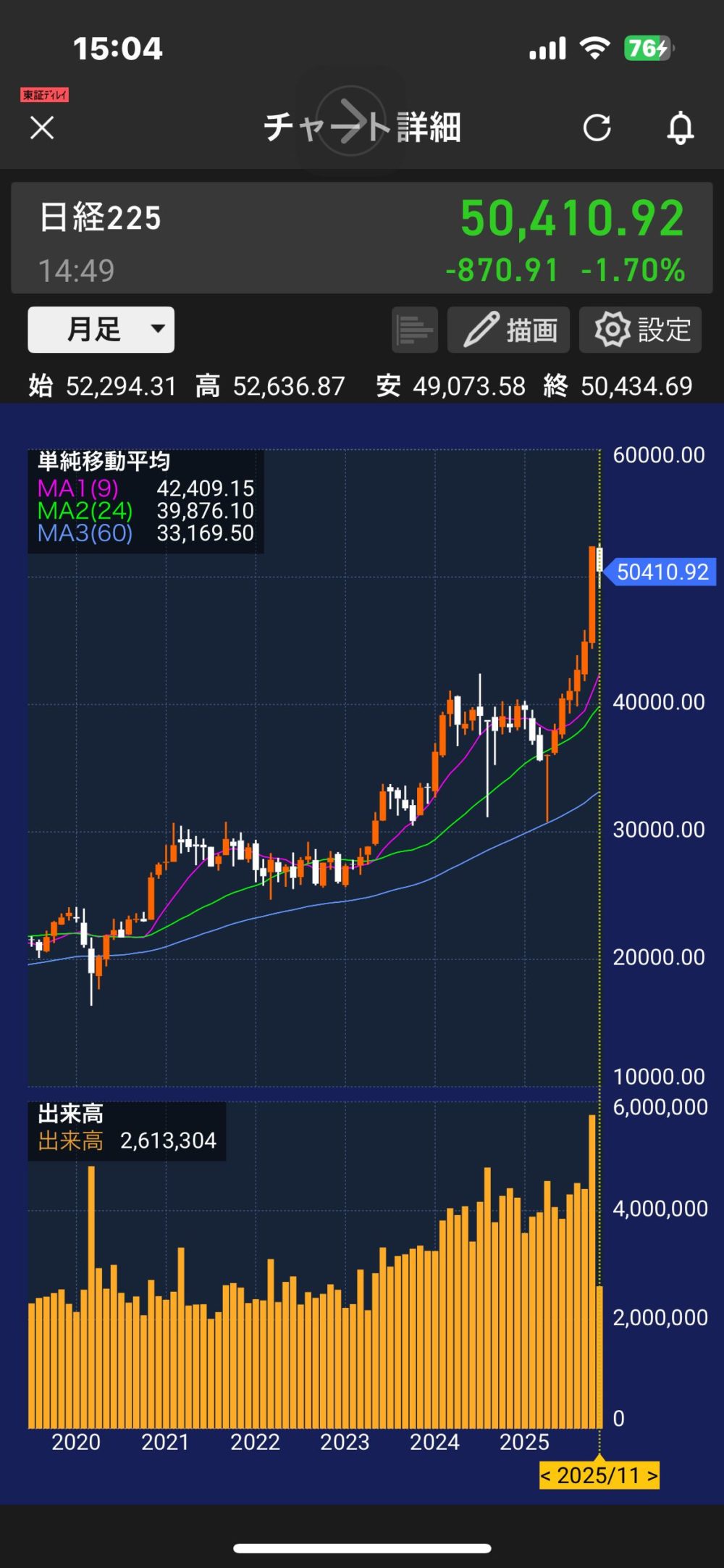 - 現在:50,400円前後で調整中(でも高値圏維持)
