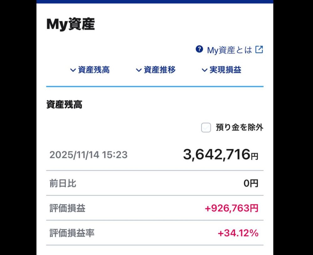 そしてあれから、たった1ヶ月――2025年11月中旬の現在、なんと含み益が+200万円増えて、合計500万円超になりました😳✨