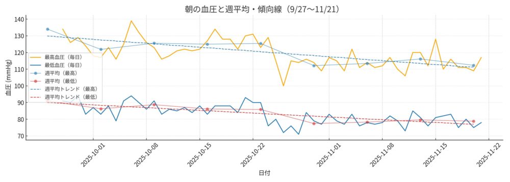 - 🩺低い血圧も95 → 85 → 80と安定
