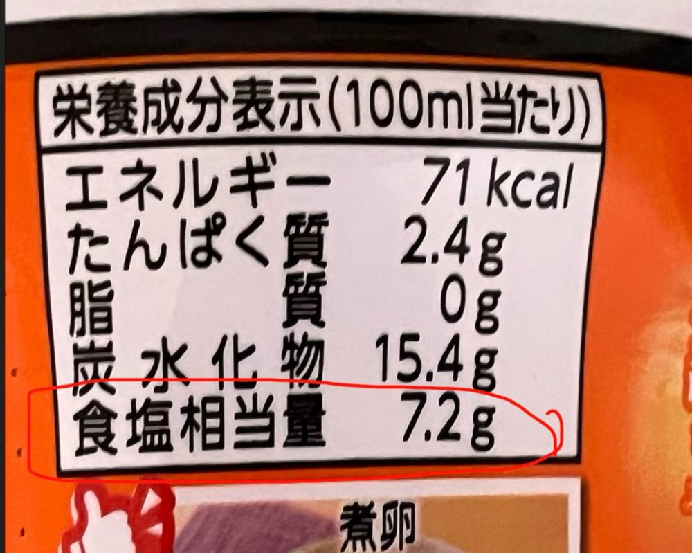 👉 100mLあたり 食塩相当量 7.2g