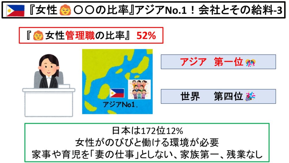 フィリピンの会社は『女性👩🦰〇〇の比率』アジアNo.1!